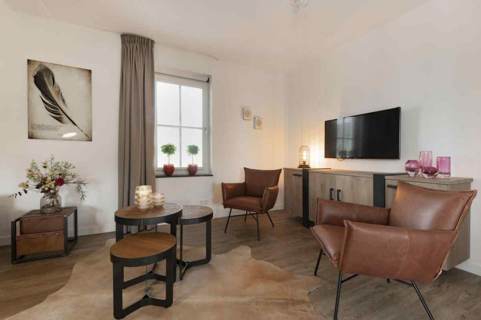 Zodra je binnenstapt in de villa, valt het lichte en open karakter meteen op. De royale woonkamer is voorzien van een grote comfortabele hoekbank, een sfeervolle haard en een ruime eethoek. Dankzij de grote raampartijen heb je prachtig uitzicht op het water, terwijl je via de schuifpui direct het terras oploopt. De moderne woonkeuken grenst aan de woonkamer en is van alle gemakken voorzien, met onder andere een inductiekookplaat, Nespresso- en Senseo-apparaat, combi-oven, vaatwasser en koelkast. Handig: in de bijkeuken staan een wasmachine en droger, zodat je ook bij een langer verblijf niets tekortkomt. Extra fijn is de aparte tv-kamer waar je even rustig kunt ontspannen of de kinderen hun eigen plekje hebben.