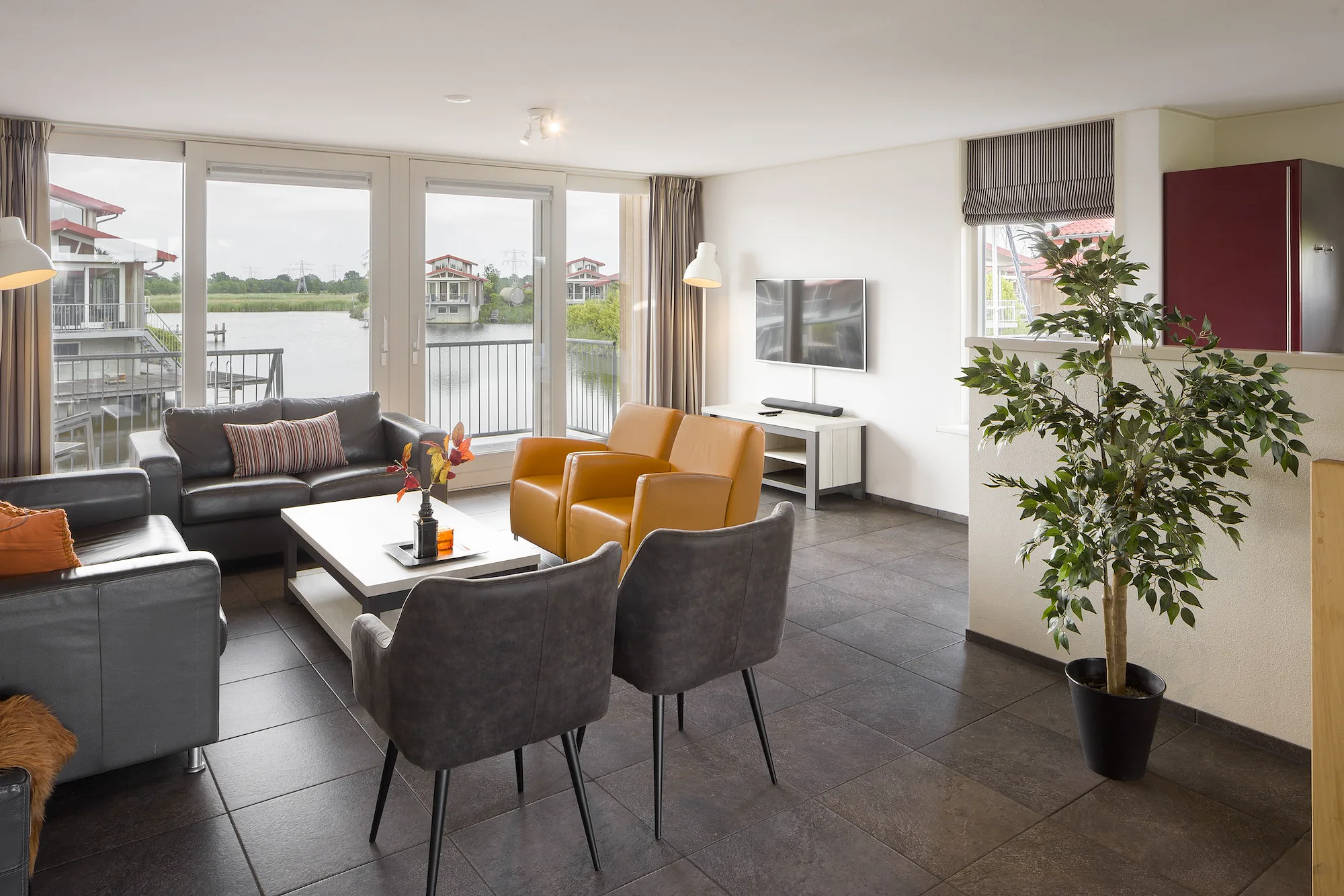 De Goudplevier Bubbelbad 10 + 2 op Waterpark Zwartkruis is een ideale plek voor een groot gezelschap dat samen wil genieten van ruimte, water en ontspanning. Deze vrijstaande villa ligt direct aan het water en biedt dankzij het bubbelbad in de tuin nét dat beetje extra luxe. Met zes slaapkamers, drie verdiepingen en een eigen aanlegsteiger is dit een fijne keuze voor families of vriendengroepen die Friesland op z’n best willen ervaren. Vanaf de veranda kijk je uit over het water – heerlijk voor een rustige ochtendkoffie of een borrel bij zonsondergang!