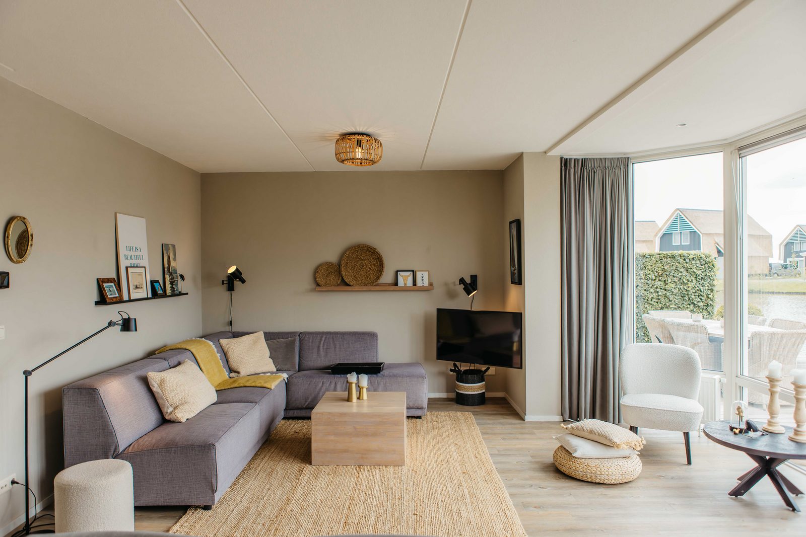 Als je in de Havenvilla verblijft, begint elke dag met uitzicht over de idyllische binnenhaven. De lichte woonkamer met grote raampartijen en een gezellige zithoek biedt alle comfort om te ontspannen. Zet de openslaande deuren open en stap zo het ruime terras op met eettafel, stoelen en parasol. Hier kun je genieten van de ochtendzon met een kop koffie, of ’s avonds natafelen terwijl de bootjes rustig voorbij glijden — heerlijk toch? De villa beschikt over een eigen aanlegsteiger voor boten tot 8 meter, dus neem gerust je sloep mee of huur er een in het dorp. Dankzij de centrale verwarming en complete inrichting voel je je hier het hele jaar door thuis.