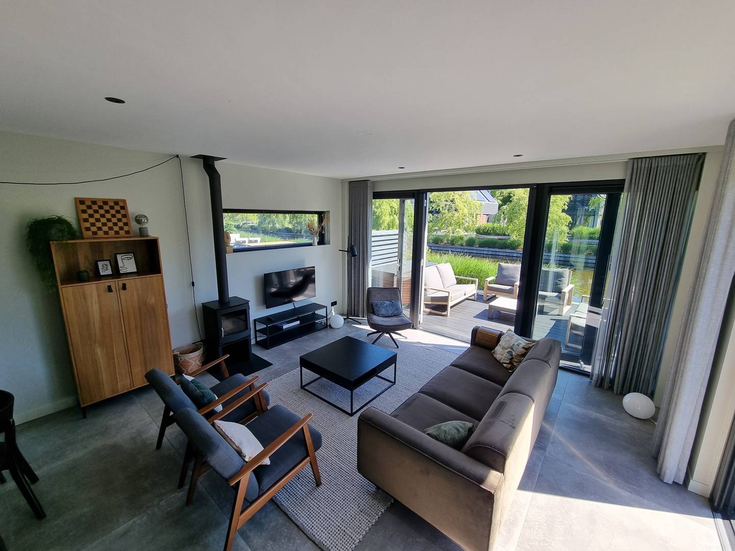 Je begint je dag misschien met ontbijt op het terras, terwijl de zon langzaam boven het Slotermeer klimt. Daarna een duik vanaf je eigen steiger, of je huurt een bootje en vaart zo het water op – hoe relaxt is dat? Fietsen langs de Friese meren is ook echt een aanrader; wij raden je zeker aan om naar het gezellige Balk te fietsen voor een ijsje of een terrasje. ’s Avonds steek je de open haard aan en plof je neer op de bank met uitzicht op de fonkelende lichtjes die over het water weerspiegelen. Heerlijk toch, dat je hier elke dag het vakantiegevoel volop beleeft?