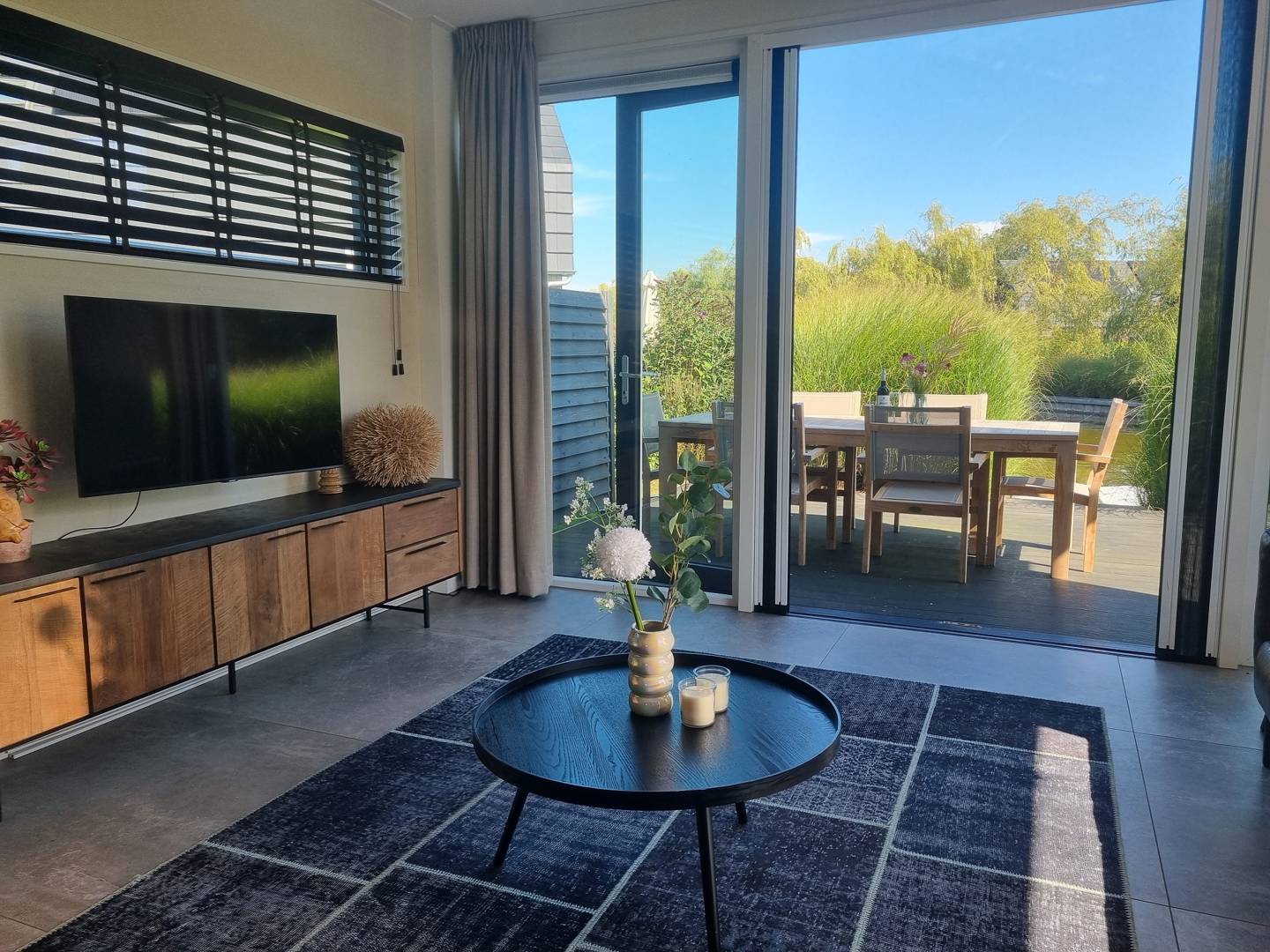 Start je dag met ontbijt op de vlonder terwijl de eerste bootjes voorbijglijden. Daarna kun je direct vanaf je aanlegsteiger het water op met je eigen of gehuurde boot, of je pakt de fiets voor een tocht langs de meren. Wij raden je écht aan om naar Balk te fietsen voor verse broodjes en een terrasje aan het water; klein omrijden, groot plezier. Terug bij Watervilla 9A neem je een duik via de zwemtrap, spoel je je af onder de buitendouche en schuif je aan voor een lange tafel met streekproducten. Liever uit eten? In de omgeving vind je knusse restaurants waar vis en Friese klassiekers op de kaart staan. ’s Avonds is de living fijn voor een film of spelletjes, terwijl buiten het water zachtjes kabbelt – simpel en precies goed.