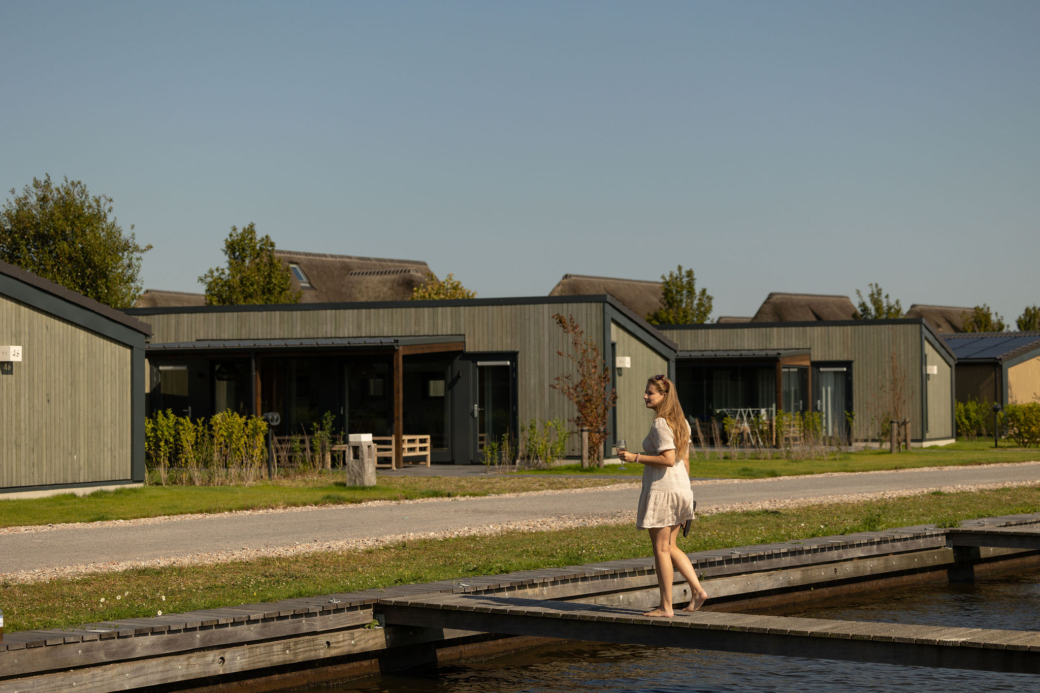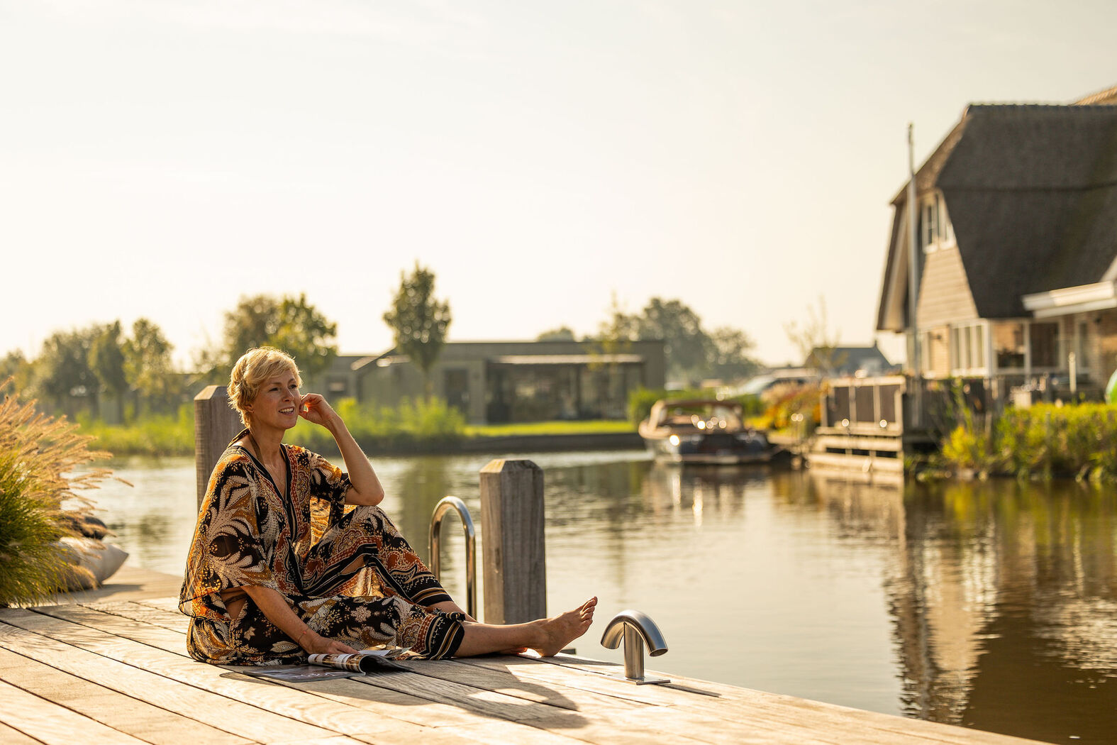 Buiten leef je in het ritme van het water. Vanaf de eigen aanlegsteiger kun je direct het Tjeukemeer opvaren, zwemmen of een hengeltje uitgooien. De verlaagde steiger met zwemtrap, buitendouche en picknicktafel maken het buitenleven helemaal compleet. Ook aan gezelligheid geen gebrek: er is een eigen jeu-de-boulesbaan, een grote loungebank en ligbedden om te ontspannen in de zon. Neem zeker je fietsen mee – de omgeving van Delfstrahuizen is prachtig en via de fietspaden ontdek je de Friese meren op je eigen tempo.