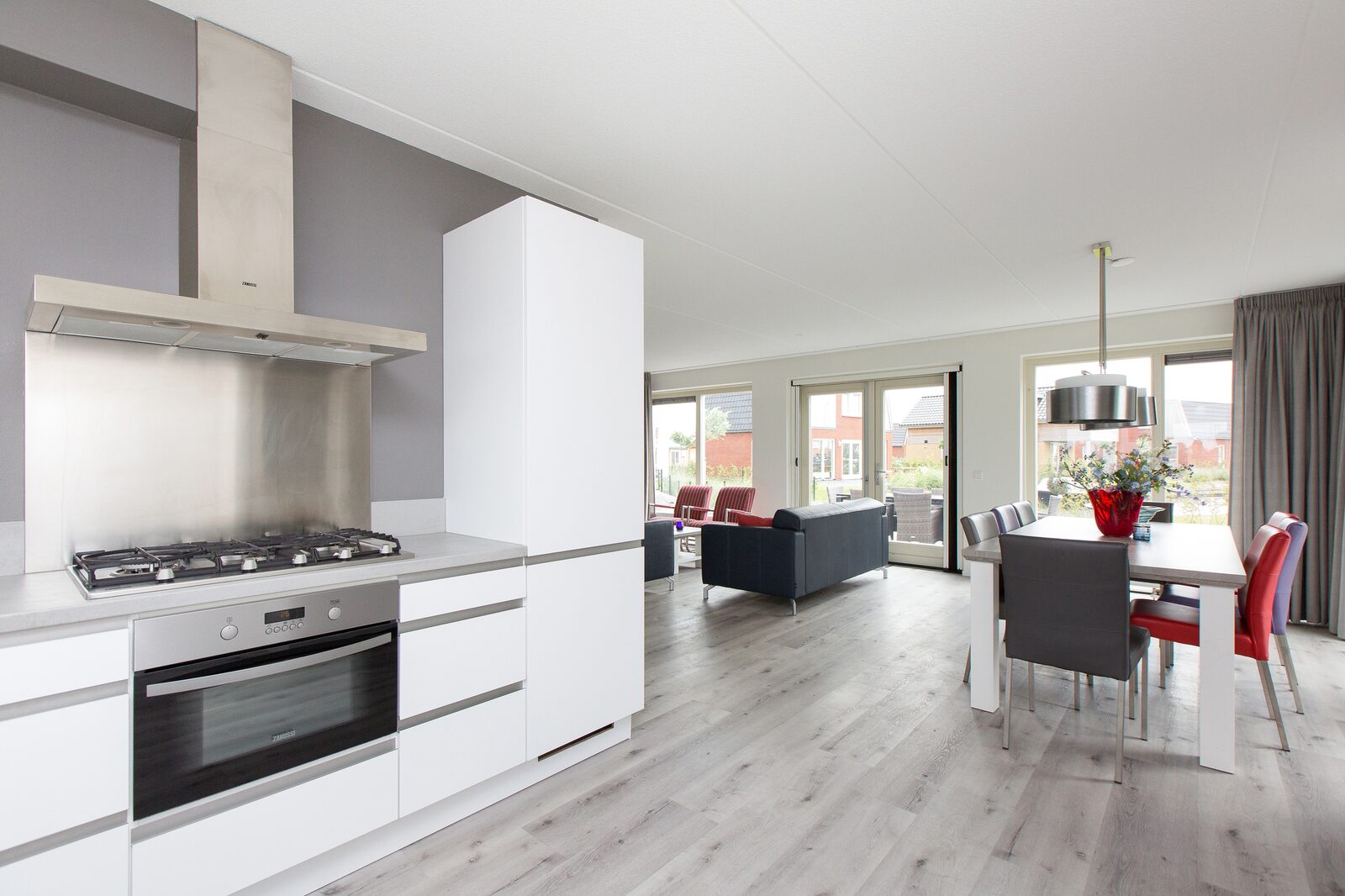 Zodra je binnenkomt in de Sneekermeer 8 woning, valt de lichte woonkamer direct op. Door de openslaande deuren stroomt het zonlicht naar binnen en geniet je van het uitzicht over het water. De zithoek met tv en ruime eettafel nodigt uit tot lange avonden met goed gezelschap. De open keuken is volledig uitgerust met o.a. een vaatwasser, combimagnetron, koelkast met vriesvak, filterkoffieapparaat en waterkoker. Op de verdieping vind je vier slaapkamers met comfortabele boxspringbedden, zodat iedereen ’s nachts heerlijk kan uitrusten. Er zijn twee badkamers, waarvan één ensuite, en een apart toilet — ideaal als je met een groter gezelschap verblijft.