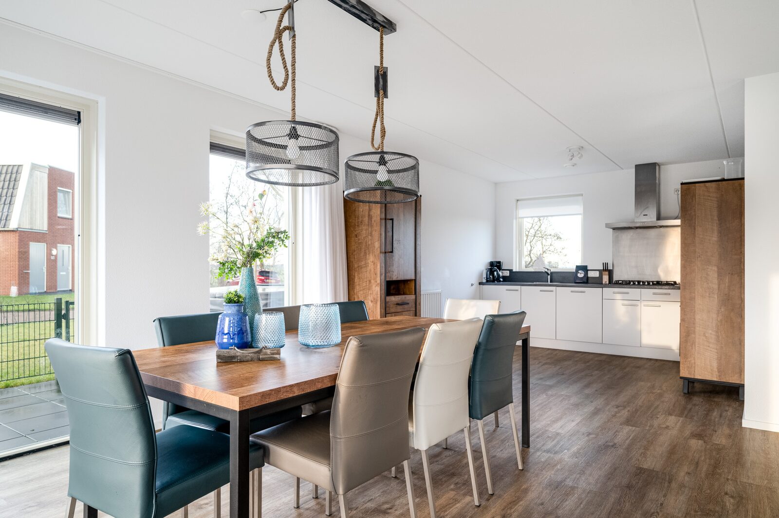 Als je hier verblijft, heb je letterlijk alles bij de hand. De Sneekermeer 8 woning is vrijstaand, ligt op het zuiden en heeft een royale omheinde tuin met eigen aanlegsteiger. Neem zeker je fietsen mee, want vanaf het park fiets je binnen tien minuten naar het centrum van Akkrum voor een terrasje of boodschap. Binnen vind je een sfeervolle woonkamer met openslaande deuren, een ruime eettafel en een comfortabele zithoek met Smart TV. De open keuken is compleet uitgerust met o.a. een combimagnetron, vaatwasser, koelkast met vriesvak en koffiezetapparaat. Er is een apart toilet beneden en boven vind je vier slaapkamers met heerlijke boxspringbedden en twee moderne badkamers met inloopdouche en vloerverwarming — ideaal voor een ontspannen start van de dag.